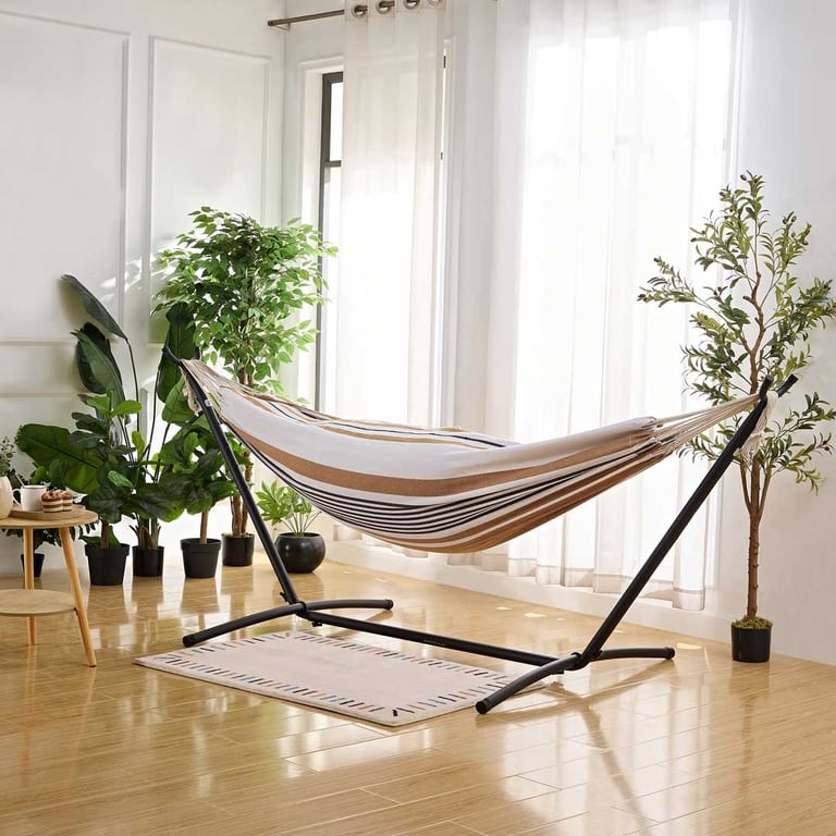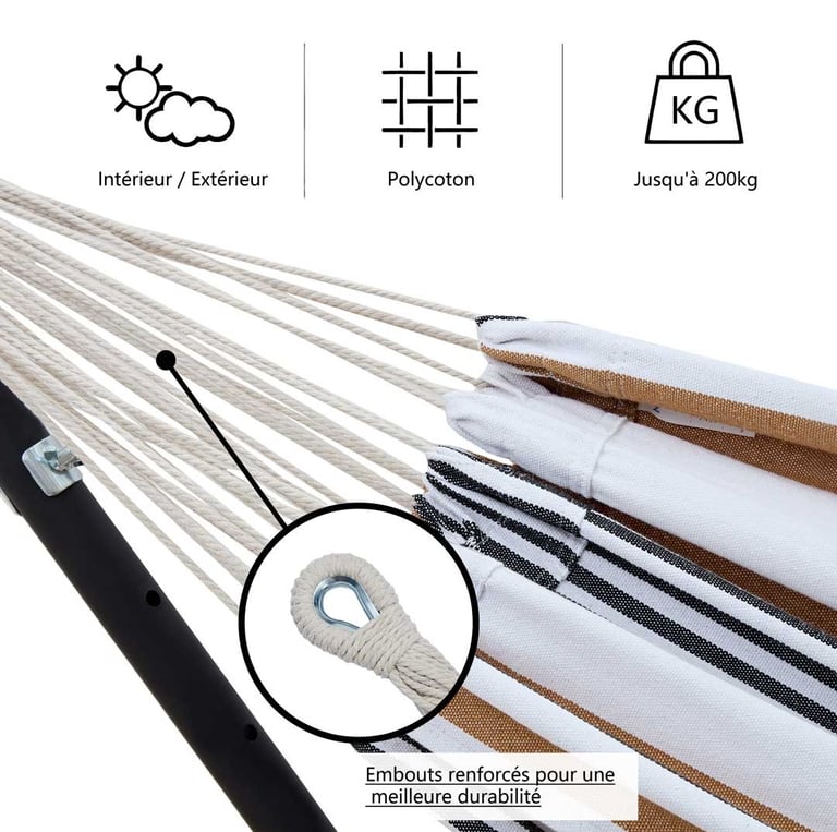 Un hamac original pour l'intérieur et/ou l'extérieur, avec une toile confortable en polycoton pour une détente et un confort maximum