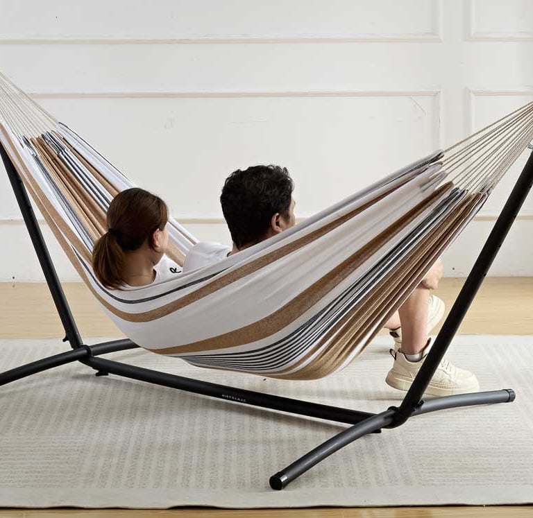 Le hamac sur pied de nirvhamac est incroyablement confortable et élégant, je l'adore!